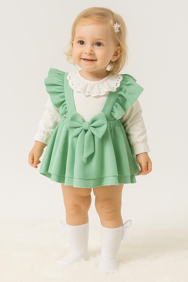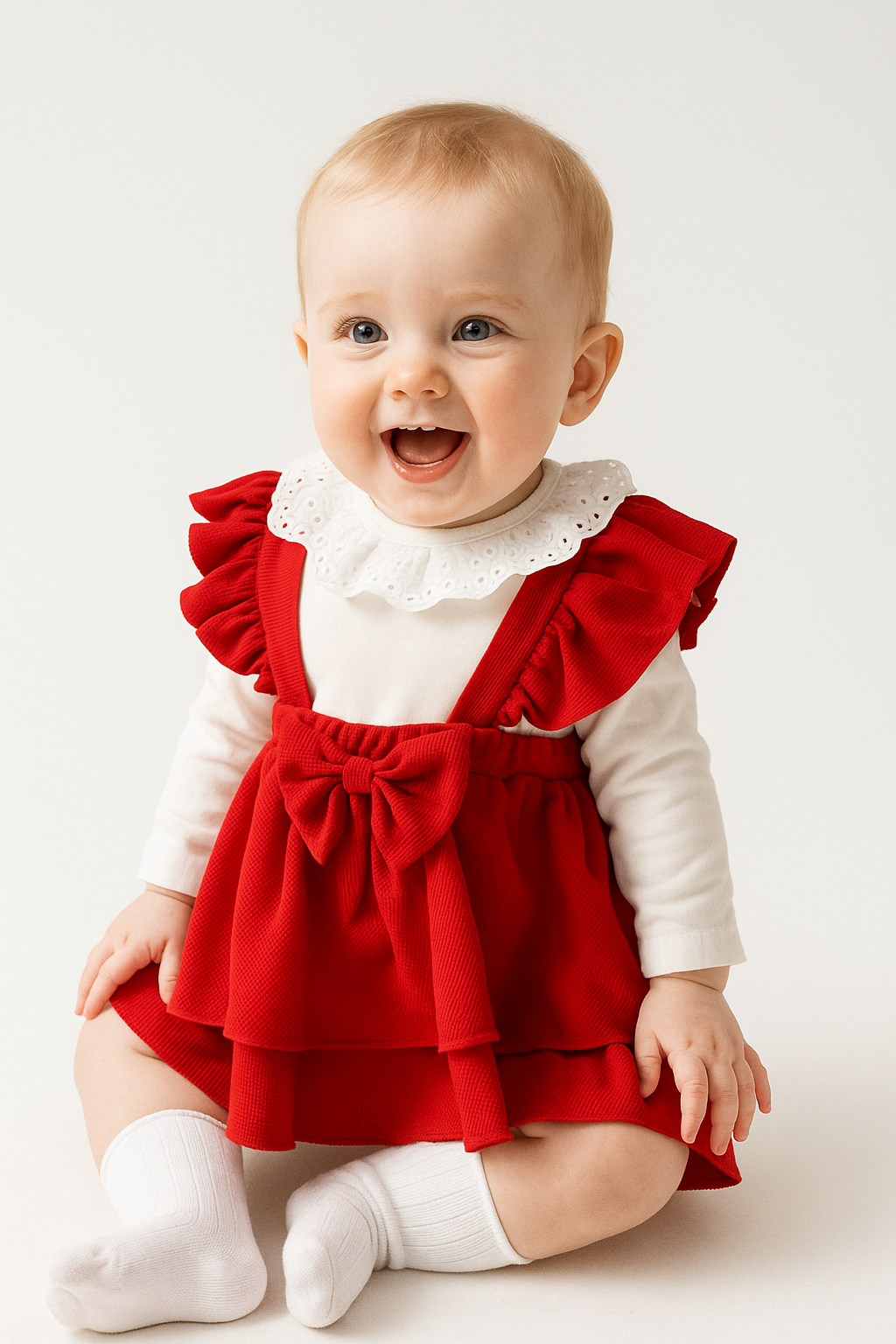 Kız Bebek %100 Pamuk Fiyonklu Body Kırmızı Elbise